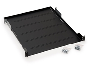 Polica, fiksna 19" 1U/150mm dubine nosivosti 15kg, perforirane površine - crne boje.
